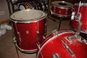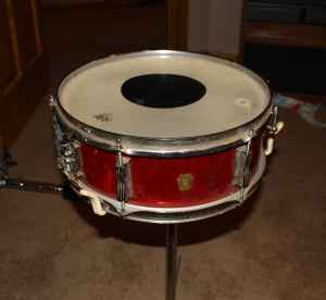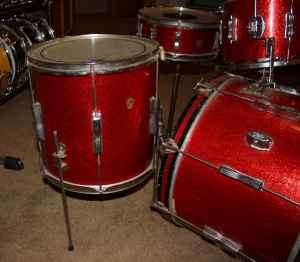 On C/List for $950, this Red Ludwig Clubdate....looks like a metal hoop on the bass reso side.