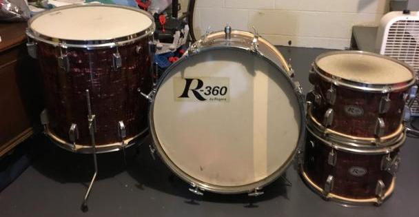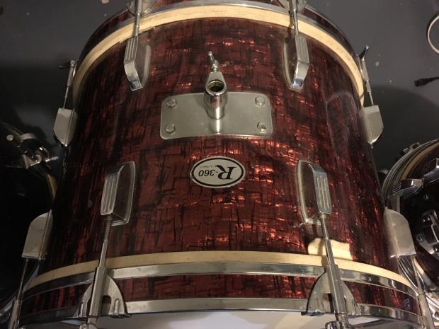 Can somebody please tell me if the wrap on the drums in the pics I've attached is original? I've never seen it on a vintage Rogers 360 kit. I'm assuming that it's a re-wrap. Can anyone confirm? The current owner of the kit is calling it a "champagne pearl" wrap.