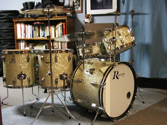 Ah jeeze... now I have to comment! LOL! Most guys on this site know that all I own/play is WMP, with Rogers being my MAIN drums of choice for all the different gigs I do. I have three Rogers sets, all mid 60's, and again, all in WMP. Oh, before I go any further, yes Super B, nice drums! They remind me of my 1966 Rogers Buddy Rich Headliner set with the exception that mine was ordered originally with 14X20, 8X12, 14x14, and a Powertone snare drum. This was my MAIN giging set until I aquired the 1965 Rogers Buddy Rich Celebrity set shown in my avatar. I've been playing the '65 BR Celebrity's exclusively for the past 5 years, and that is finally allowing me to get to the point here!... sorry, I began to digress... Anyway!...