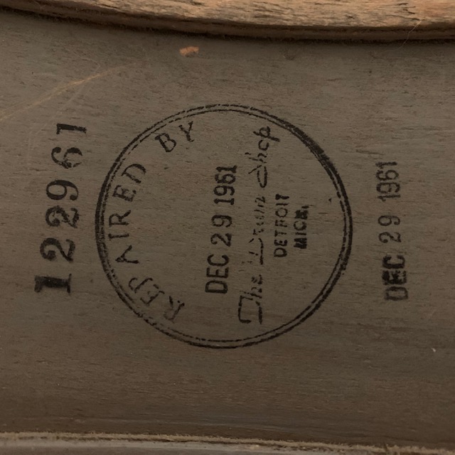 The inside is stamped twice with a date of Dec 29, 1961 once from a drum shop and the second using a slightly different font . It also has a serial number 122961.