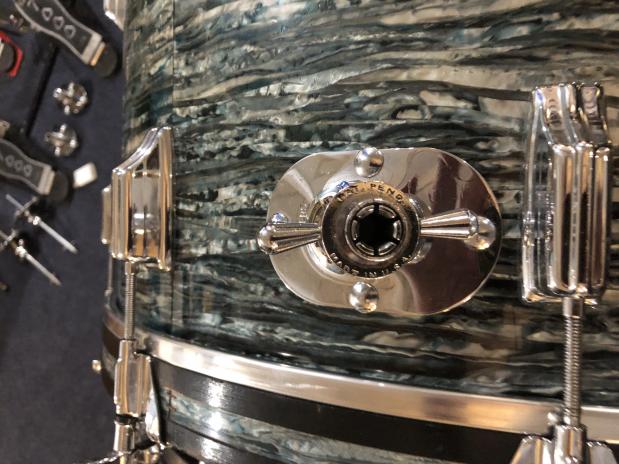 I purchased a pair of spurs on the WWW. They definitely "looked" like Rogers but they didn't fit any of the 5 receivers I have on hand (three attached to drums and two I've purchased to try to find a fit. They are too wide of a diameter - just barely. I have also found an issue with the center "T" post for the tom mount. I bought one on the web and it fits a 24" blue strata and the 22" black strata (both Fullerton Power Tones) but not the 20" blue strata Fullerton Holiday - because of a diameter issue again - the receiver being slightly smaller on the 20". I have never seen a thread anywhere that talks about this and it makes me wonder if I'm just missing something again... Has anyone else run into this issue of spurs and/or tom mounts not fitting previous or later models before? The tom mount is for sure Rogers but the spurs could be from something else...? Maybe they aren't Rogers in the first place is what I am wondering. About the drums involved: They are all Fullerton tags. The tag on the 22" is initialed "H R" and has a much lower serial number (not that that really means anything with Rogers) and the tag looks older. The number is printed on the 22" but typed somehow (not with a typewriter) on the 24". I personally bought the 24" used in November of 1974 (I was 11 - Grandma bought it. The 20" Fullerton is a recent purchase and it came with die cast collets but you never really know where they came from - at least I don't. The 24" originally had die cast collets (which all failed eventually of course). Thanks for reading. All reactions help.