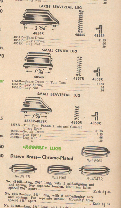 Anyone know where I can find some modern lugs that will fit on a 60's Rogers Holiday BD? I'm getting a 14x20 shell that's in good shape but no hardware. I don't really care about getting the correct Rogers lugs, as this will be for a player kit. I just want the sound of these killer shells. So, I need some lugs that will match up with the existing holes.