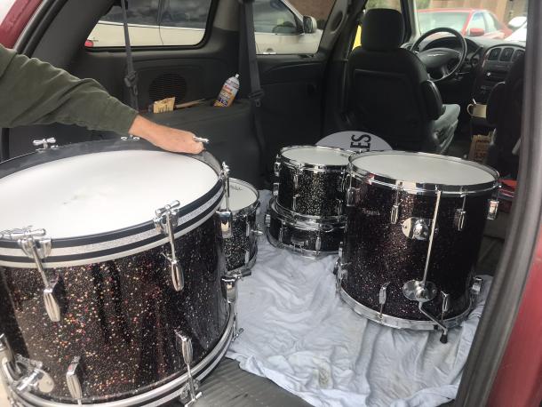 I asked the normal questions such as shell condition, serial numbers, and the snare I backed into a bit. He stated he wasn’t really a drummer and really has limited knowledge, but was willing to give me any detail I wanted. He said he used to be a flea market broker in English town NJ around the 80s and 90s; and, these drums were acquired by him. He told me about two toms 12 and 13 having a different shade than the rest but said this was common for that time, maybe transitioning I’m not sure. Also about only 1 cracked B and B kit that was on the real side of floor. He was kind enough to send me any pic I wanted but they were of flip phone quality. I arranged for a meeting a couple days later (as he’s half an hour away), and he obliged to the local mall parking lot. It was now up to my research and my own eyes and judgement to guide me.