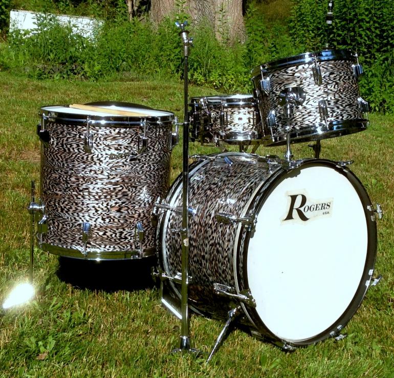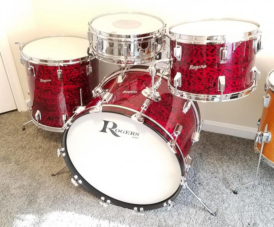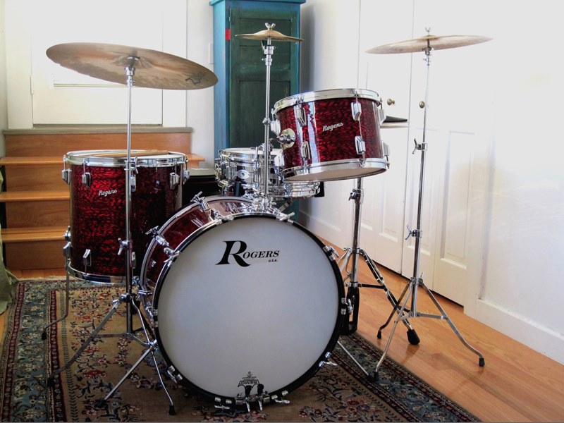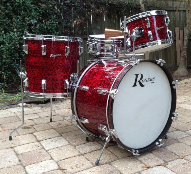 Found this kit local, sold it to a collector wanting a player's kit who was not pleased that it needed too much work, and have since cleaned it up. 13 16 22 with matching snare.