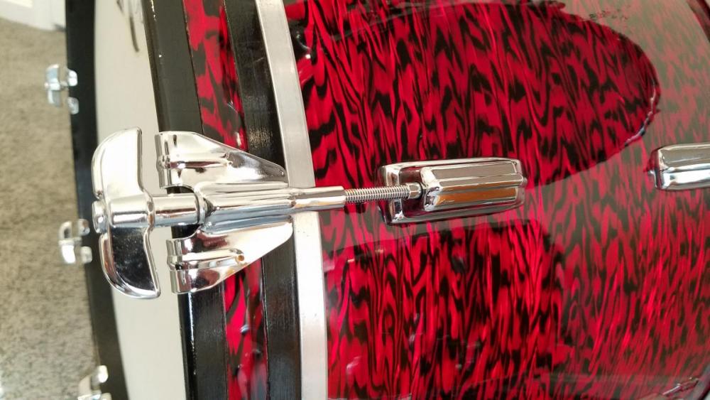 Savings things goes for drums too. Up close, the black onyx set has seen better days, but I have become quite fond of the 20, 13, 16 layout over the past few years. Manny gave me a great deal on it and the only thing that is not original is one set of claws and rods that were missing. I got a correct set off eBay for short $$. If the wrap had not become a problem, it would have been a collector piece based on the condition of the rest of the kit. I figured I'd do it over in jet black eventually, but for now it's fine given it's not being played out.
