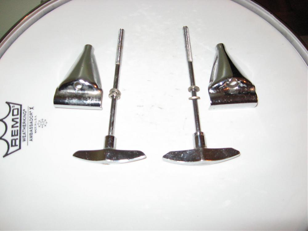 Hi all, I'm new to the forum and I definitely like it around here. It's good to know find out that we're normal and everyone else is crazy. Anyway, I recently picked up a Slingerland Avante 60N in lavender satin flame off of CL (for $175.) and I need at least 8 B.D. claws and rods. I had to borrow some from my 80's Magnum set but I'd really like to put those back where they belong. Anyway, the ones I need are similar to the later 70's and 80's but the handles are a bit thinner and slightly rounded on the corners that would otherwise be sharper on the later handles. Also, the later T's had a bushing or spacer where the handle meets the rod. The ones I need do "not" have this spacer. As far as the claws go, (you may already know this but I'm gonna say it anyway) Slingerland eventually started putting an indentation around the hole where the washer of the rod meets the claw. The ones that I need do "not" have this indentation. Also, i'm looking for a couple of very nice 14" 8 hole tom rims hopefully from 1970 or '71. I got one off ebay but I suspect it to be imported from the late 80's so if someone has the right parts I definitely want them. I'm looking for very good to excellent condition for all parts as this drum set deserves them. Thanks and I'm glad to be here!!