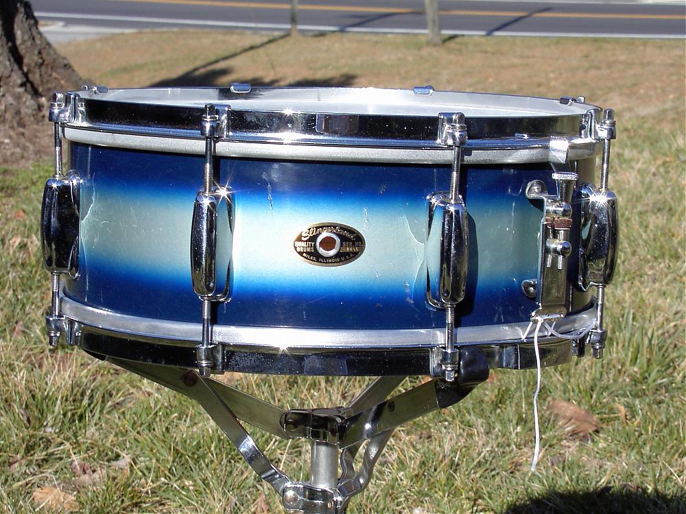 Can any one tell me why this snare drum lower hoop slot for the snare tension strings are so small, I bought this snare use and it does not have the correct heads on it , I believe because the tension strings are compressed down when the head is tighten , it has Remo head on it now , it is a April 7 1959 Blue and White Slingerland Snare drum . Also is it norm for this drum to have the bearing edge curve were the snare strings go threw the hoop?