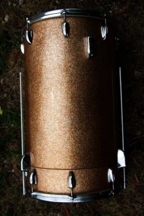 Bottom head says Slingerland "Genuine CALF" No badge, no hole, three pin grip legs, a cymbal mount, haven't cracked it open yet, no snare sound? 14 x 24 Gold multi-color sparkle, almost champagne, but not pink enough for my guess?Larger Image - http://postimage.org/image/y4540q89v/Can anyone help with ID? Why no air hole or badge? I don't understand the groove around the bottom?