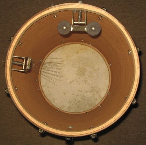 All I need to make the snare work is the screw, lock washer and a nut, and then a knurled thumb screw or knob. I kind of expected to find parts, inside the drum. Nothing. So someone "cleaned" it and removed the rattles.