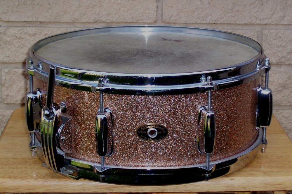 It's a 5 1/2 x14 and is date-stamped OCT 31, 1960. It's got COB rims and the company's Super (clamshell) strainer. However, based on the research I've done, the Super Gene Krupa snares came with a solid maple shell. Isn't the shell on this particular drum a 3-ply? Any and all "words of wisdom" would be greatly appreciated. THANKS in advance for your time and your help.
