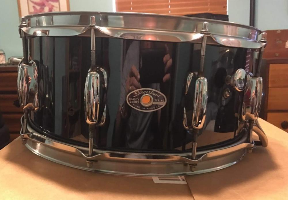 I've been offered this 6.5x14 Slingerland TDR snare in a black chrome over wood finish. It's only missing the stick saver hoops.