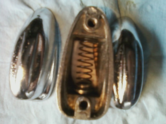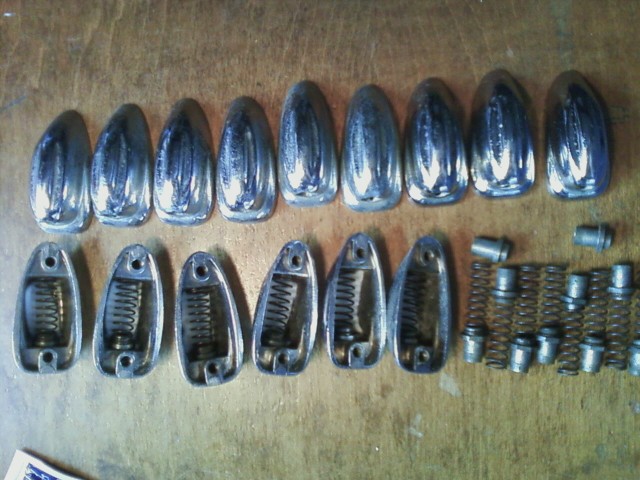 Here's what I have. 1.5" screw holes on center. Some light pitting on chrome and need a good clean and polish. But will look pretty nice finished. Springs and inserts shown in pic are for the top row of lugs. 15 all together and might have 1 more somewhere. :)