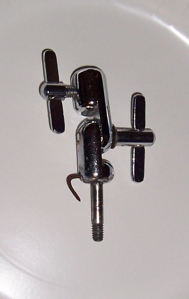 I was going through some of my "drum stuff" and ran across this Slingy tilter. There's some sort of metal piece that I can only describe as a "bent nail" coming out of the top section (please see pics). If I push it in (or through) the top portion of the tilter it still protrudes somewhat. Should the "excess" be bent around the top portion of the tilter? If not, where should it go?