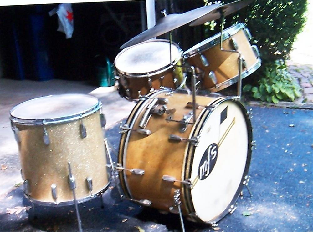 1. Although the owner claims it's a 1956 kit, he purchased the floor tom as a stand-alone item sometime in 1959. I have no idea whether this kit included a floor tom when it was issued from the factory or not.