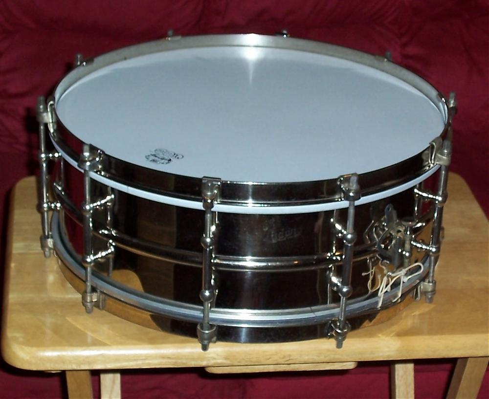 I picked this one up last week. The prior owner had all the pieces in a box when I purchased it without any heads. Eight of the twenty rim clips were broken, the shell and rims were extremely dull and the t-rods, strainer and snare butt had so much rust on them they were barely recognizable. You can see pics of their original condition in the "Vintage Drum" section of the forum under the subject title: "NEED HELP TO I.D. THIS OLD LUDDY."