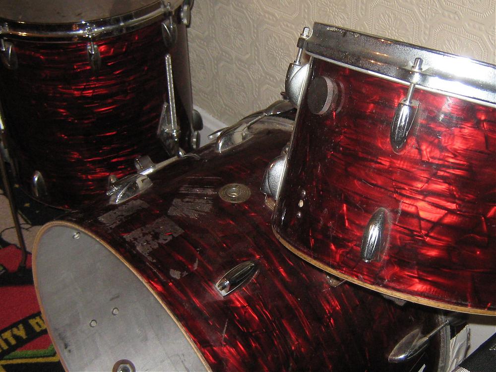 Just picked up a set of Gretsch drums for cheap. Would be grateful for further info. I understand that the wrap may be somewhat unusual. Thinking of passing these on once I establish where they may land in today's financial climate. There is some seam lift on bass and floor tom wrap but otherwise the wrap looks great (under the grime). All three drums are missing resonant hoops and rods. Serial #s are 113882, 114148, 114357.