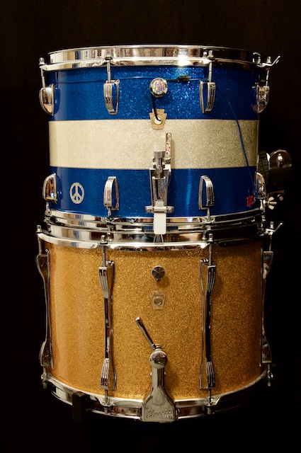 My Marching Snares- Ludwig 10 1-2"-15" early 60's Marching Drum in Gold Sparkle--Ludwig 10"-14" 1969 Marching Drum in Silver and Blue sparkle. I play these every morning to start the day. The blue/silver drum is wired up with el-wire both inside and out for it's annual trip to Burning Man.