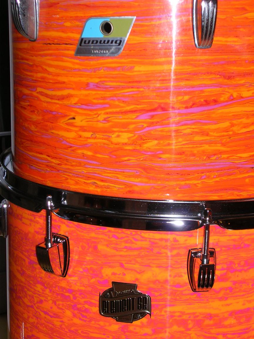 Thanks KO. I was secretly hoping you had a Bumwrap version.The project I'm working on is a 3ply, 3pc kit made up of a WFL bass drum, a Ludwig Standard tom, and a Ludwig mid 70s floor tom. I'm already into it for $500, so Precision and Sam aren't really an option since I don't plan on keeping the drums and plan to sell locally.I did a Gretsch kit in green diamond from China and was very pleased with the product and the results. I just wish they had deeper depths and that the wraps were cut square. Stuff for Drummers has deeper sheets but less of a selection, and the Orange is sold out.What do you think of Bumwrap's "Orange Mod 2"? There's no lavender in it at all, but it might pass as a nod to the vintage finish.