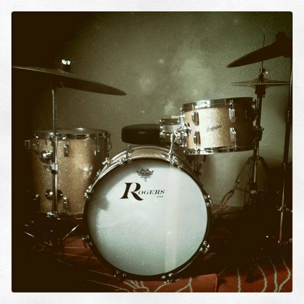 Old Rogers drum set with little 18" bass drum.