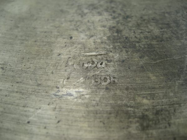 Trowa (East Germany) 16.8" crash cymbal. It's made from nickelbronze, has very fine, almost undetectable lathing and very abundant (but also not very pronounced) hammering, which appears to be done by hand. I bought it quite cheap in hopes of acquiring a decent secondary crash.