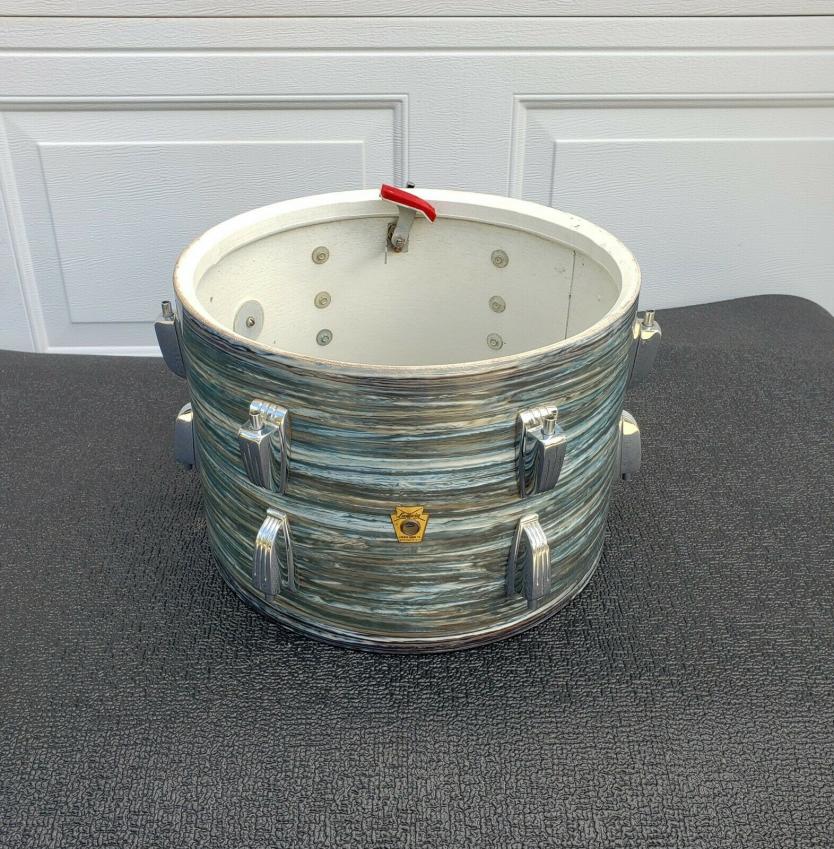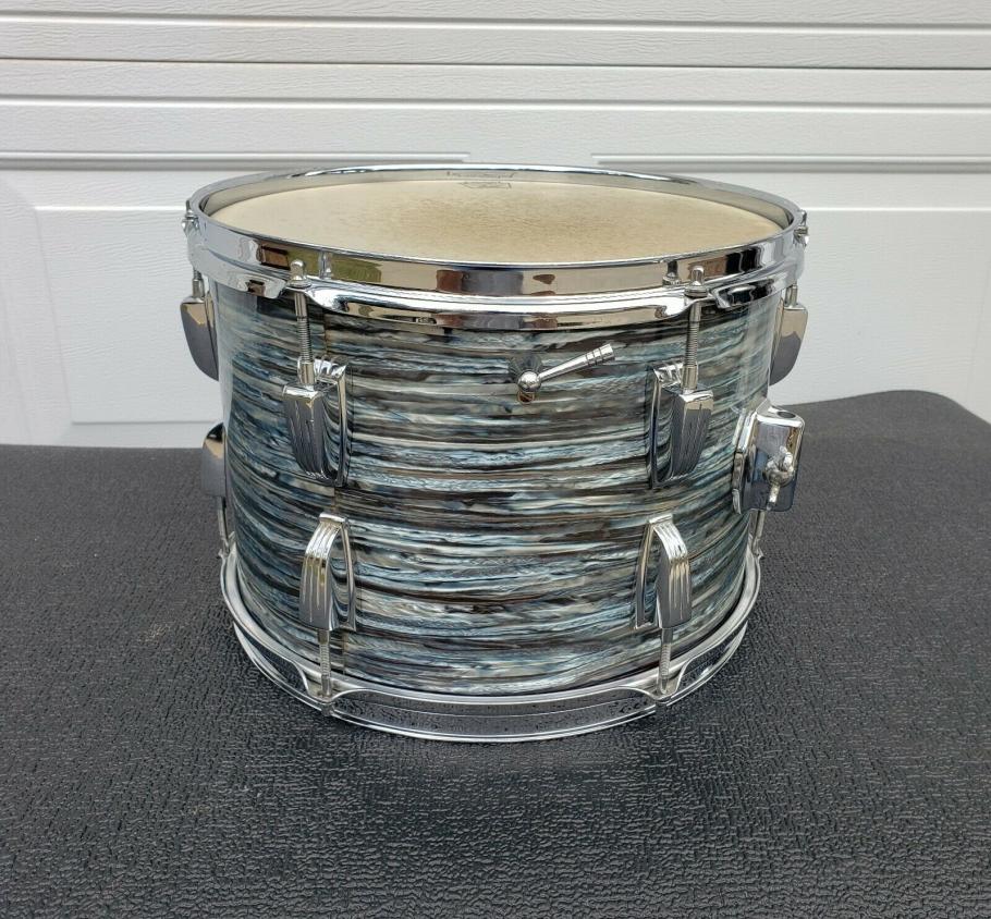 This a nice Vintage 1963 Blue Oyster Pearl 13" Tom. It is in excellent condition. The wrap is nice and tight with a few light scratches that I can see. It was purchased from someone that owned it since the mid 70's. Yet to be listed is the matching bass drum and tom. Thanks for looking. Any questions, please ask. Asking $499