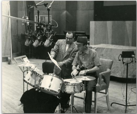 That is Fred Astaire so I'm guessing this was related to a movie production. Even if this is not an actual film set, but rather recording a track to later mime to, it would be likely that a studio would use the same techniques to make those recordings as they used on film sets.