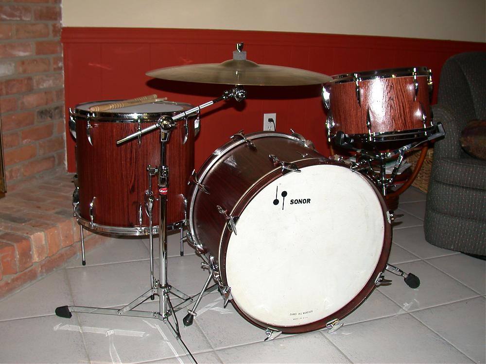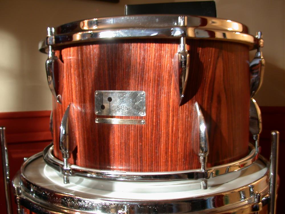 For interest sake here is my Sonor tear-drop "Rosewood" veneer re-wrap using late'50's early '60's beechwood shells. These are the thinnest shells I have ever measured at approximately 3.5mm's thick, yet extemely strong because the beechwood is so dense giving an awesome resonance.