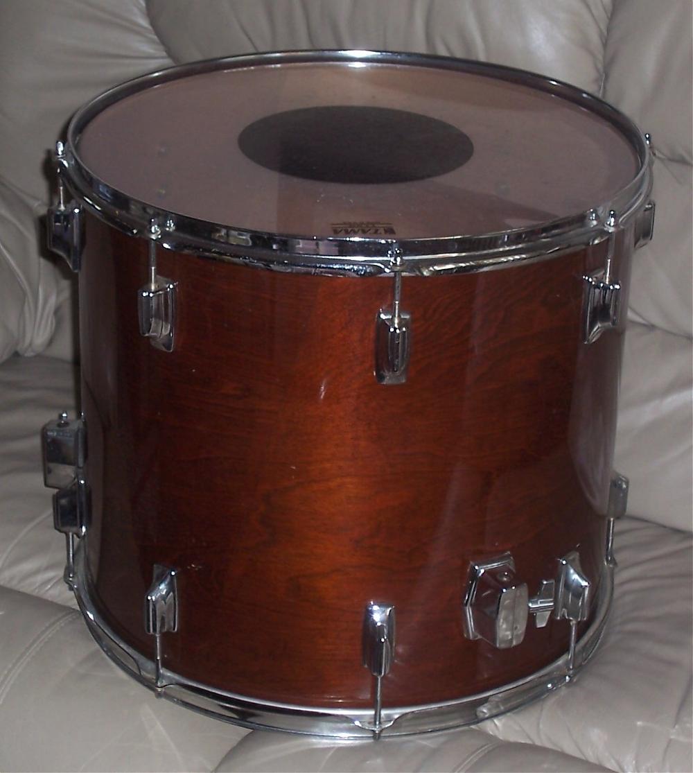 I'm taking offers on an 18 inch TAMA Superstar Floor Tom in the Super Mahogany finish. I've been informed by individuals much wiser than me that this one's from the early 80s, with a 6-ply birch shell (9mm thick).