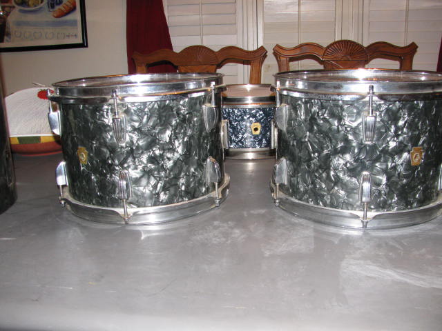 Thats what I thought when I saw the pic. The discription said 2 12" toms, but the pic really looks like a 12 and a 13. They are both 12" and a originally paired together. Thats the way Ludwig sold them according to my 1962 ludwig catalog. I bought a snare about a yr ago that is almost a perfect match.