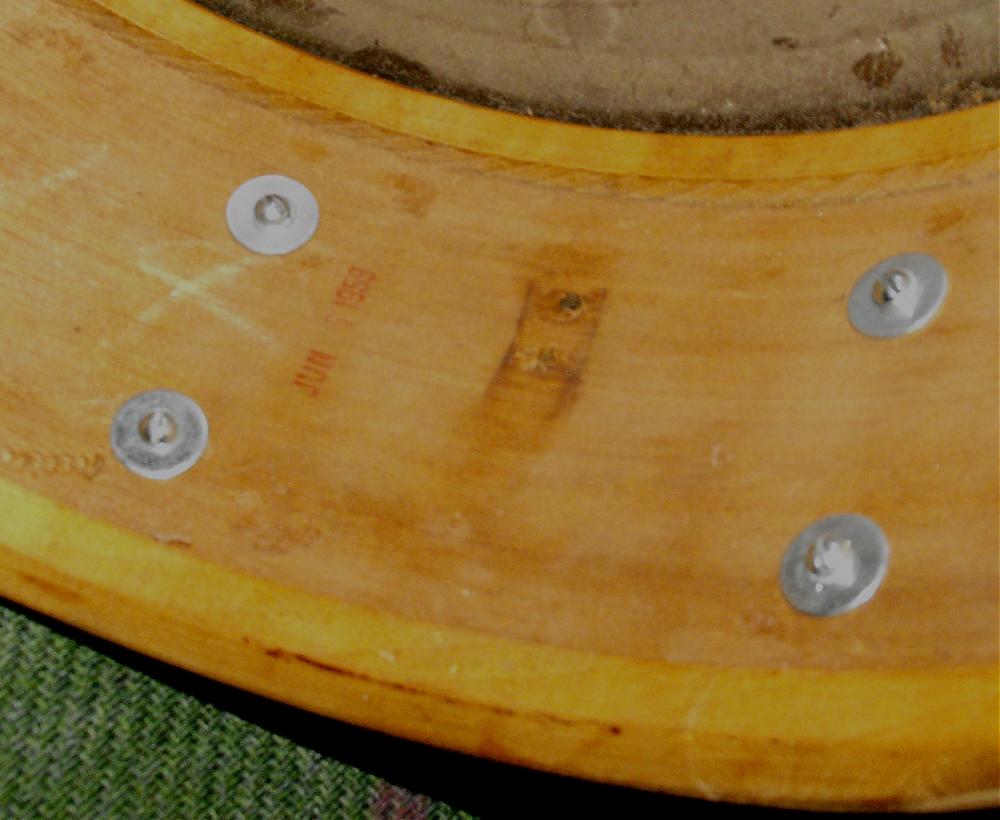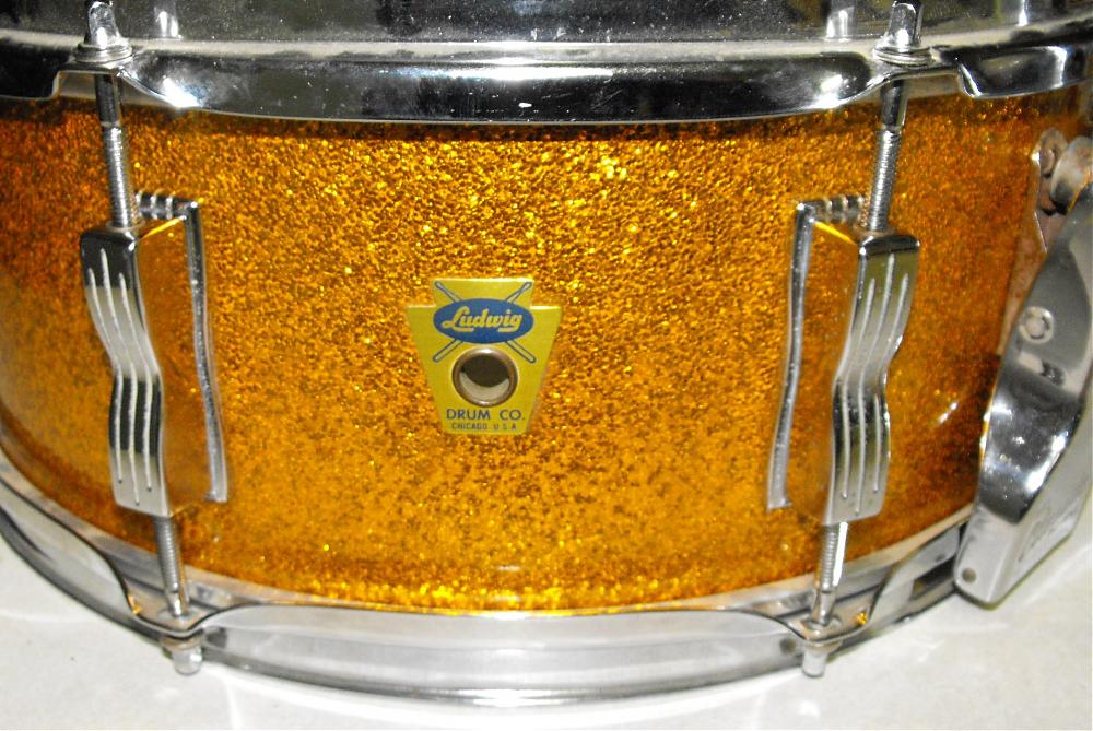 Oldschool - there were several changes between a '55 WFL and '59 Transition Badge Ludwig. The gold sparkle drum you've pictured has the correct snare butt for that year. Also, the muffler is in the correct spot...two panels to the left of the badge. On the WMP drum you showed, however, the white felt baseball bat muffler is incorrect, as it wasn't yet invented when the drum was made. Unfortunately the original muffler hole was likely enlarged to fit the baseball bat, but that's not a big deal.