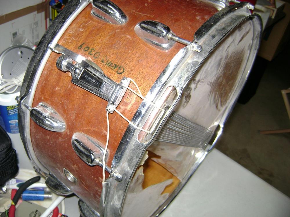 Guys, working gratis rehab on a Sling 15 inch mahogany snare drum 70's era for a school project. Someone put a standard 15 inch hoop on it and I'd like to replace it with the right hoop. Willing to trade too. Thanks. Dean