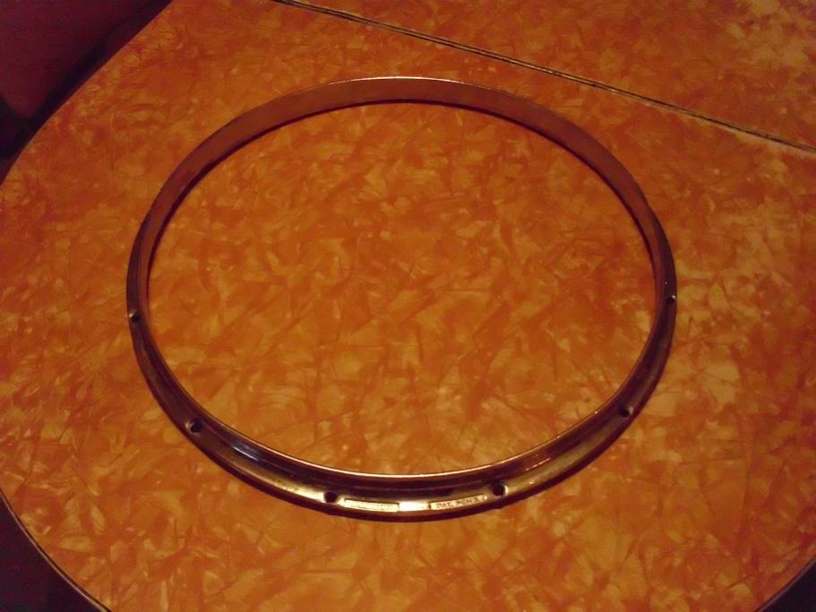 found them this evening and took a pic. i'm afraid they are not what you need though. these must have been on a marching tenor tom, I would imagine. both hoops are the same. not sure when these were made. they are super heavy. magnet does not stick to them. they are 15 inch 12 lug models. most of the mounting holes have cracks running from the hole to the edge. they are built like a beast though. sorry...if I run across any, i'll give you a shout..