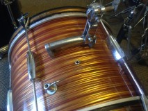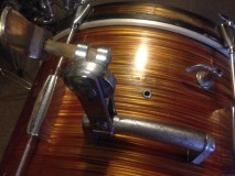 I have just bought this centre lug root beer swirl bass drum, has wooden hoops with inlay and a rail consolette, every thing looks original, the claws look a bit 70's, but the lugs are not typical pearl or star stencil stuff, or are they? the best match I have is a Riviera snare that has the same lugs all though smaller.