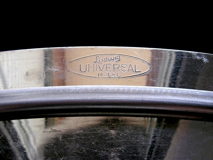 hi! i have the same drum. a 6-lug Ludwig Universal, engraved top hoop and hoop attached strainer, which causes 2 holes only (!!!) in the top hoop.the drum sounds amazing, it is quite light in weight compared to a same era SuperLudwig i have. i played a few gigs with it. it tunes up alright (using a fyberskyn head). the only pain is to keep the snare wires in great working order due to the not too stable throwoff system. works well though for jazz and light grooves.i also still have the original gut wires and some original calfskin heads. i am thinking about setting it up Original again, cause i don't use it THAT much live. would be great as original on the shelf.....here's some pics...