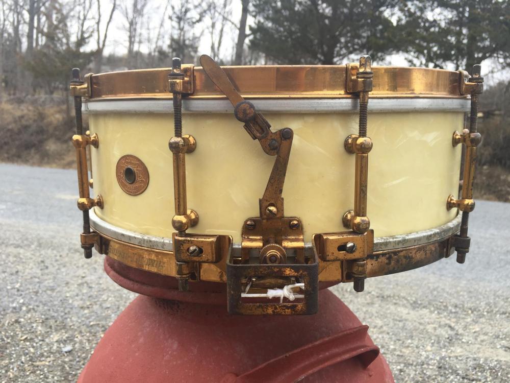 1920's Super Ludwig 5" x 14" supersensitive snare drum in White Marine Pearl a.k.a Avalon Pearl w/ Gold Hardware -