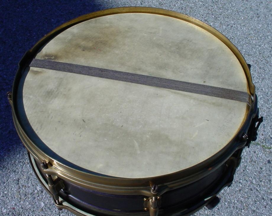 Here’s the latest snare drum to enter into the collection. This drum was willed to me by a good friend who had passed away a few years ago. My friend’s wife was ready to sell some of his snare drums and she told me that her husband had specified that I was to be contacted in order to help her sell the drums. The drum in this article was originally found in “as is” condition in an antique store many years ago by my friend’s mother. The drum is in 100 % original factory condition.