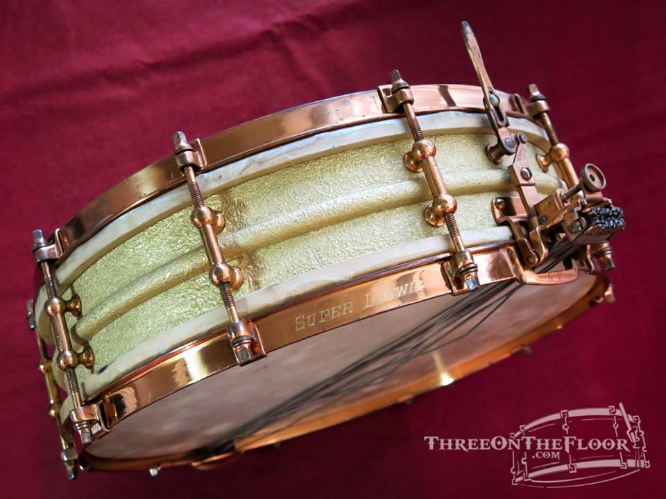 1926 Ludwig Stipple Gold 4x14 "Super Ludwig" Snare Drum.