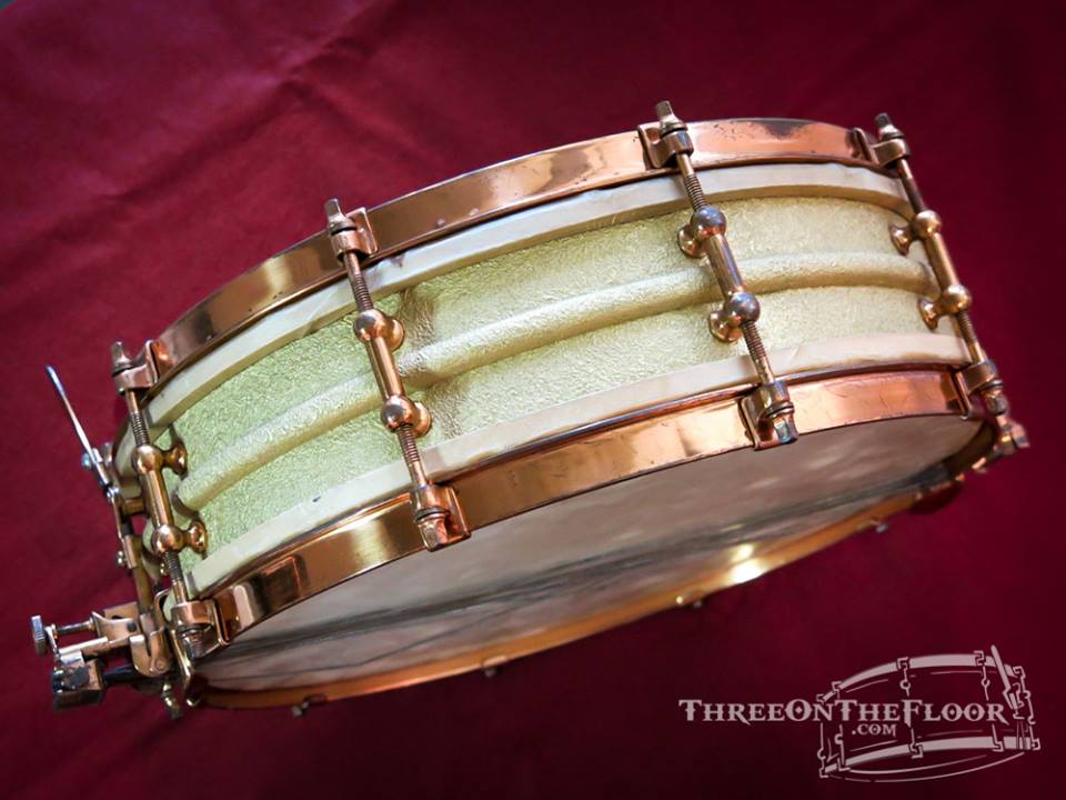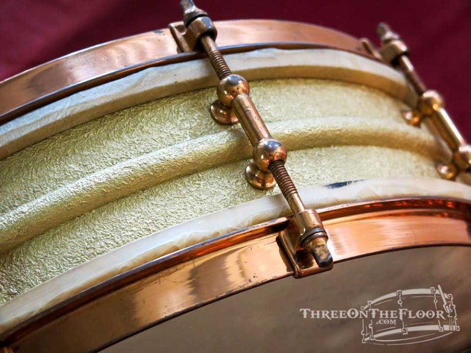 I'm really excited to have just added this nice piece to the collection. The drum was acquired from an estate auction in IL and belonged to an individual by the name of Dean Wisleder. He owned and played this drum through school to help support his engineering degree. It seems as though he either took very good care of the drum and / or his playing didn't last very long after his studies as the drum is in great condition.