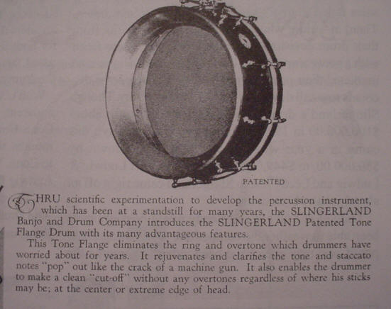 Anyone that owns a drum like this is well aware of the "pure joy" we all share when we attempt to put a top (batter) head onto the Tone Flange...and then hope that the double flange top rim will fit over the oversized batter head. Well, I lucked out on this one, there was a funky old Cana-Sonic batter head already attached to the Tone Flange and the top rim fit nicely onto the batter head so I counted my blessings and paid my homage to the god of "Oversized Heads That Fit Onto Tone Flanges And Still Allow Double Flange Rims To Fit". A nice Slingerland slunk head and the original James Snappi wires rounded out this cleaning.