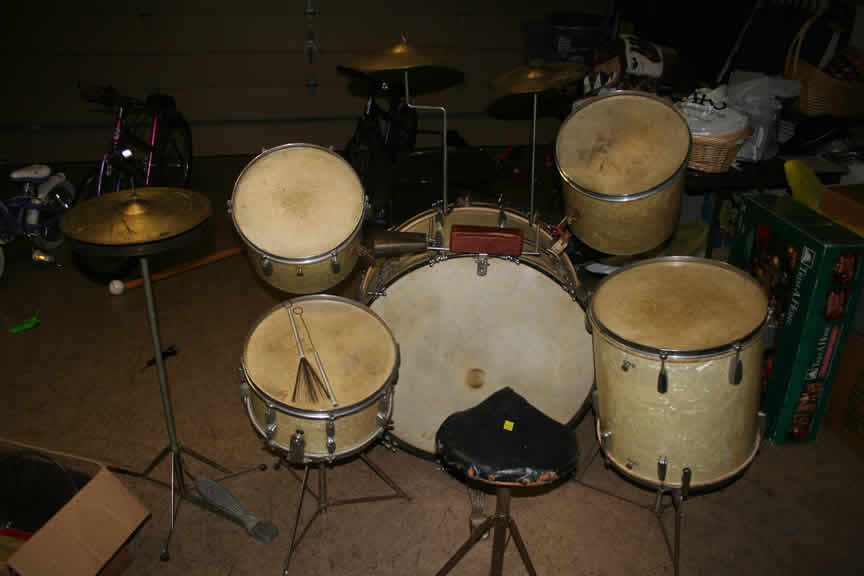 Not to be too drum geeky, but the '60s Ludwigs and Slingerlands didn't use the "broken glass" style gold sparkle...they used the type with the little hexagon or octagon sparkles...