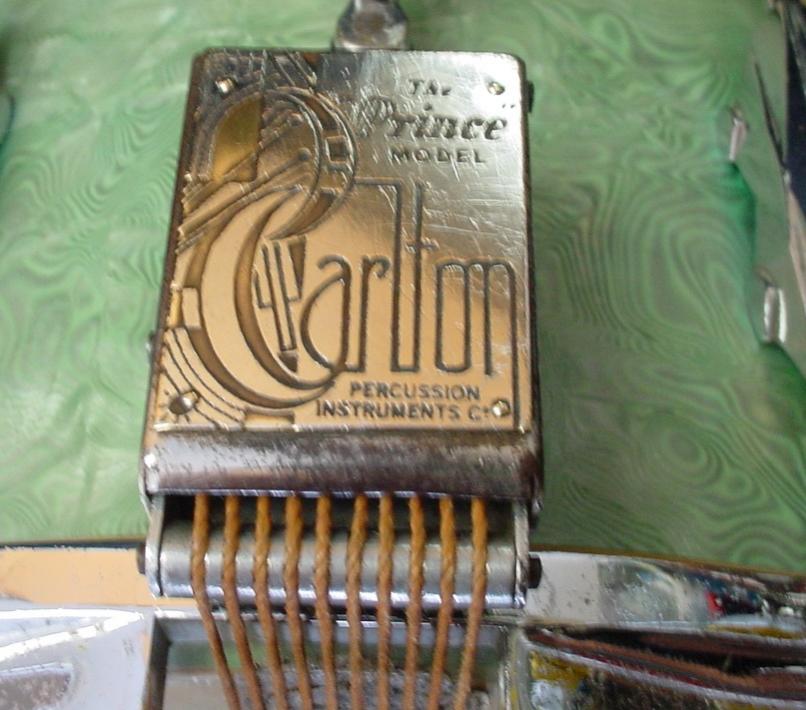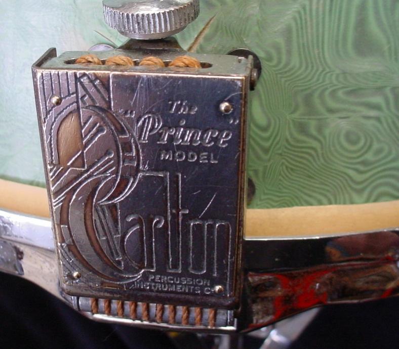 The shell structure is good but the Greenwood Pearl wrap shows some 80 year wear and tear. This wrap is pretty thin compared to the L & L, Leedy or Slingerland wraps of the same era, kind of like that thin WFL wrap in the 1940s. I was able to get a layer or two of “schmutz” off of the wrap and things brightened up a little. An interesting fact is that the shell has no badge/air hole.