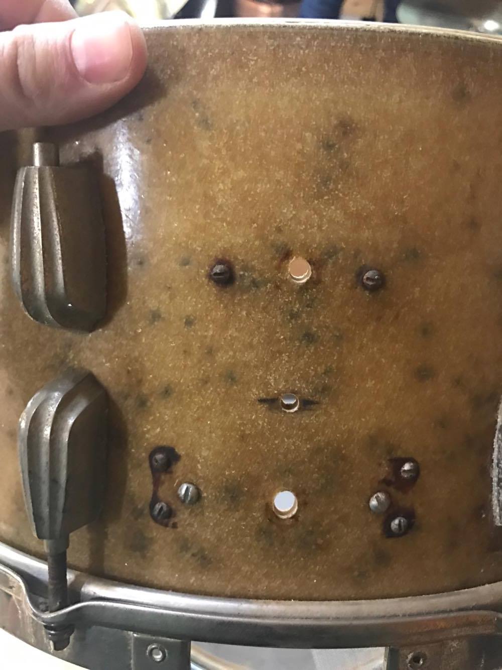 I am looking for a Slingerland 3-point strainer and bridge in nickel for a radio king snare (see photos).