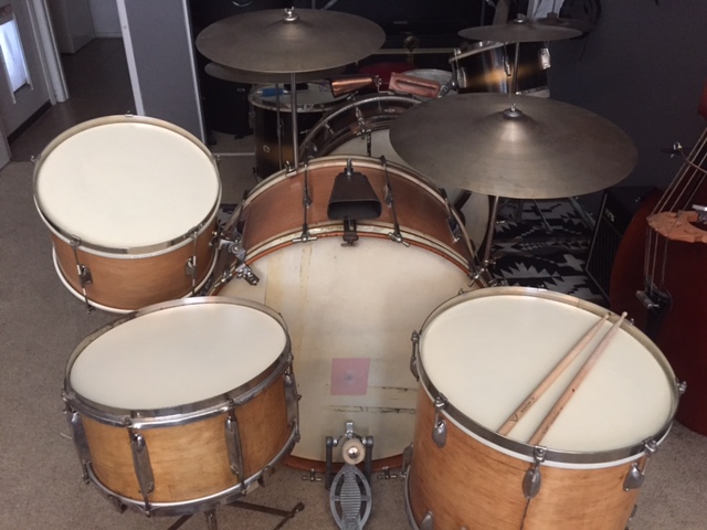Over the past couple of years, I have acquired several WFL orphan drums with Zephyr lugs and here is the end result! They don't match perfectly and they all have different badges, but I can't wait to take these babies out for a gig. Oh...and if you have never played a 28" bass drum, you're missing out on some serious thunder!