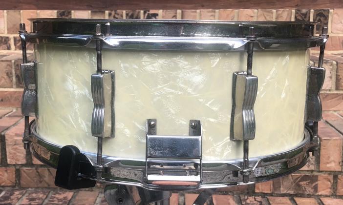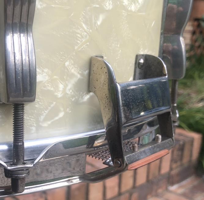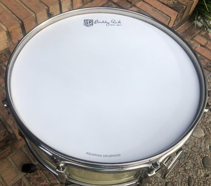 Since I have 2 of these, I am offering this FS. These drums are special in that they were the 1st issue BR Classics. WMP wrap is tight, 1st issue P87 functions properly, P88 butt extends snare wires on both ends of the beds. No muffler was standard. Has a NOS set of Puresounds on it, but the original wires are included. New heads; Aquarian Buddy Rich Tribute head on batter ices the cake, Remo Hazy snare side. Nickel has some pitting and rims have small spots of rust. Otherwise, excellent condition and very collectible drum. While this is listed “elsewhere “, VDF members can purchase for $400 + shipping through the VDF. I will ship USPS insured within the US 48 states.