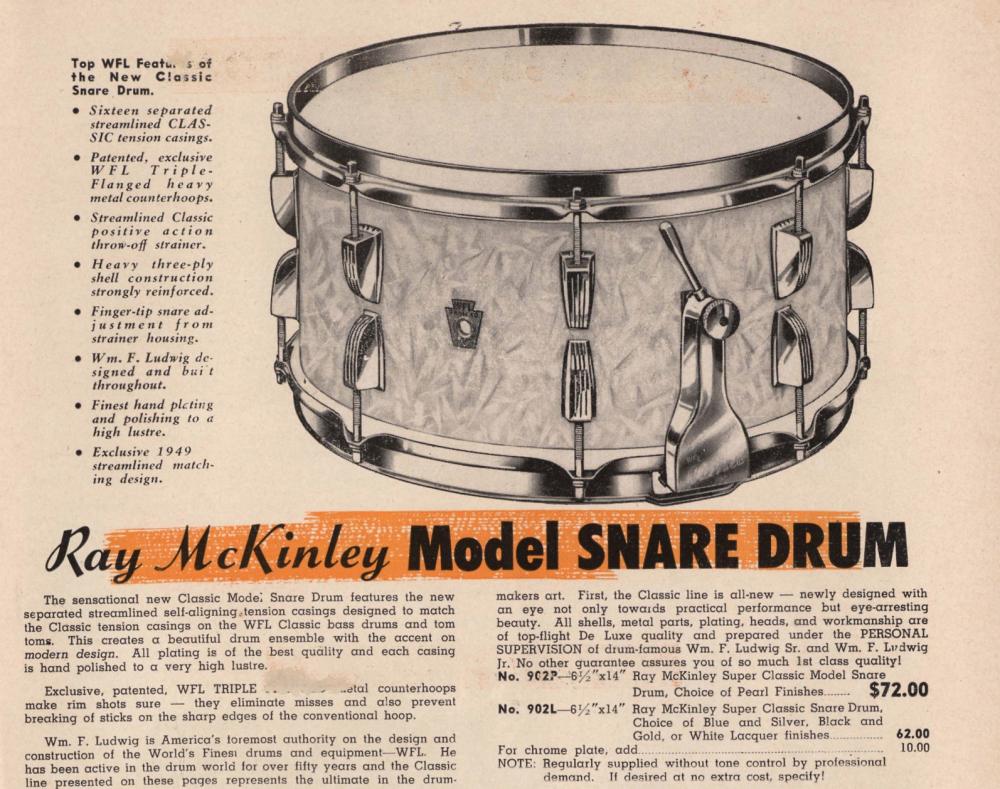 Original strainer and butt work perfectly. The snare wires and bottom calfskin head are also original! 3-ply mahogany shell and edges are in near-perfect condition.