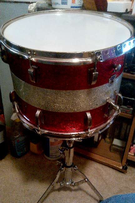 In my Drum Corps days our drum line competed against the "Cavaliers" from Kitchener, Ontario who marched the same line of snares with the red and silver sparkle wrap. Very cool!