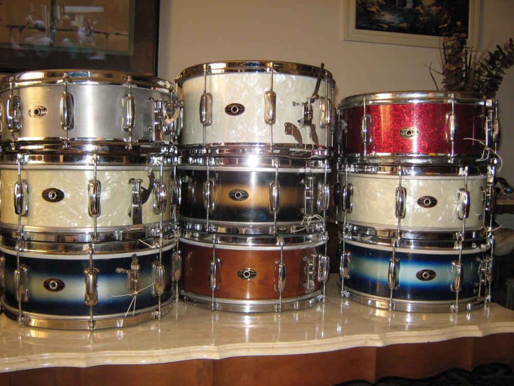 The attached photo is of a similar looking drum to the one I saw except, unlike this one with a mahogany finish,it had a White Marine Pearl wrap.