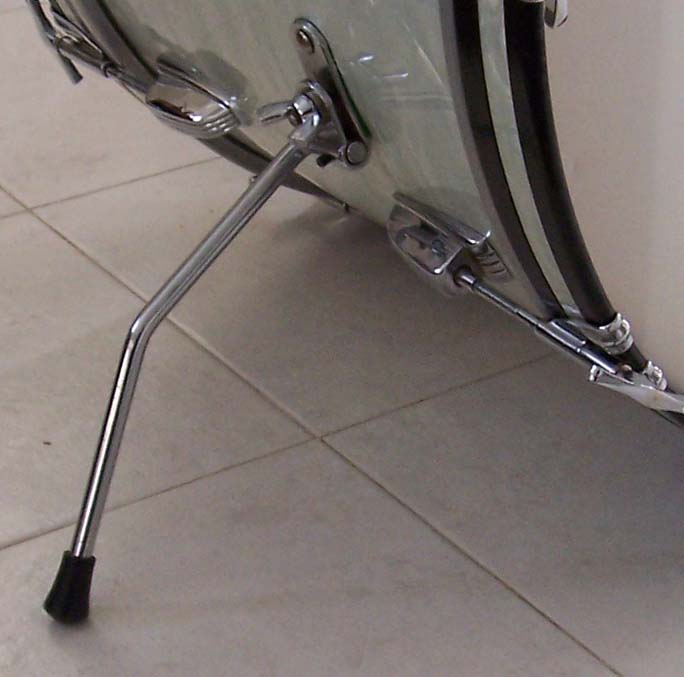 Is the front of the 22" supposed to be this far off of the floor? When i acquired this set last fall, I did a complete clean/polish job. The spurs only attach 1 way, right? What's the purpose of the small allen screw? I finally decided to use them on gig and there seemed to be alot of wobble. I tried switching sides,but then they don't fold nicely against the shell.
