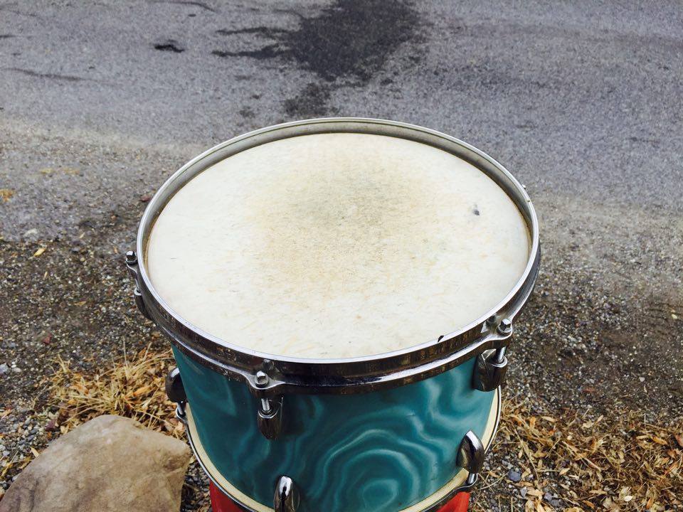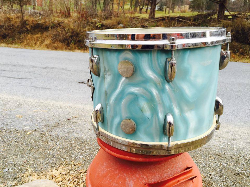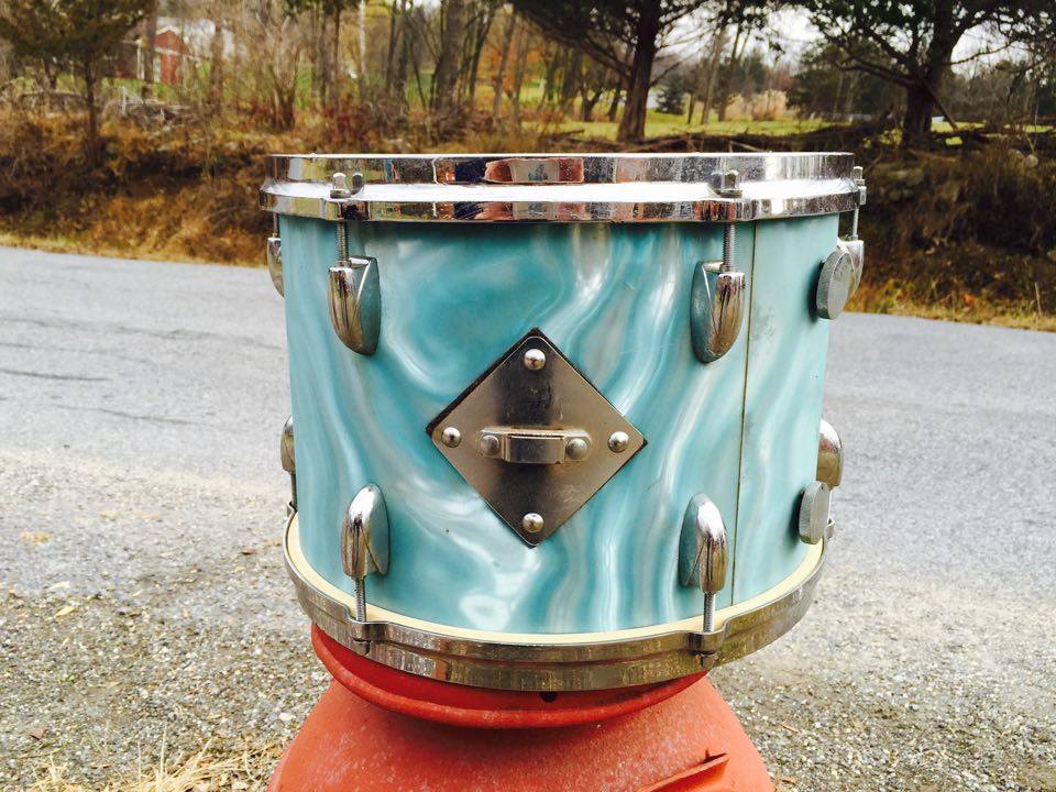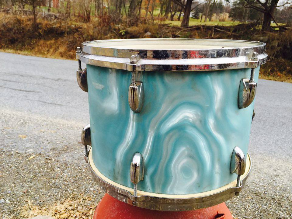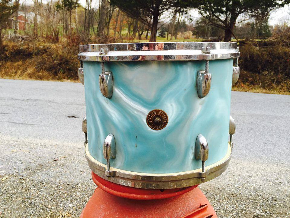 1960s Gretsch Round Badge 9" x 13" rack tom in aqua satin flame finish!