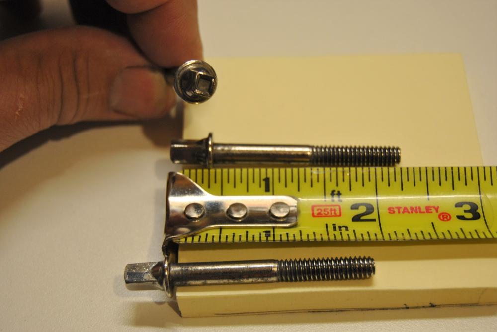 They are the typical 2 1/4" overall - 1 7/8" shank - 7/8" thread length, however the part of the rod that has me baffled is the top of the tension rod head. It is has a square indent.